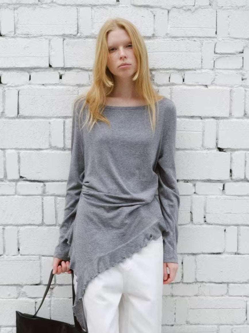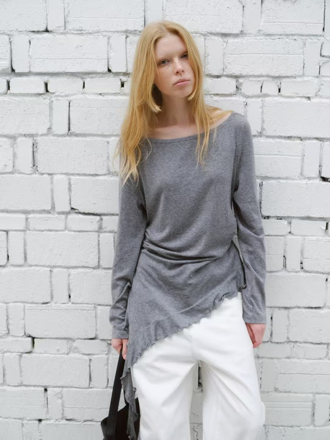 Asymmetrical Lace-Trim Off-Shoulder Top