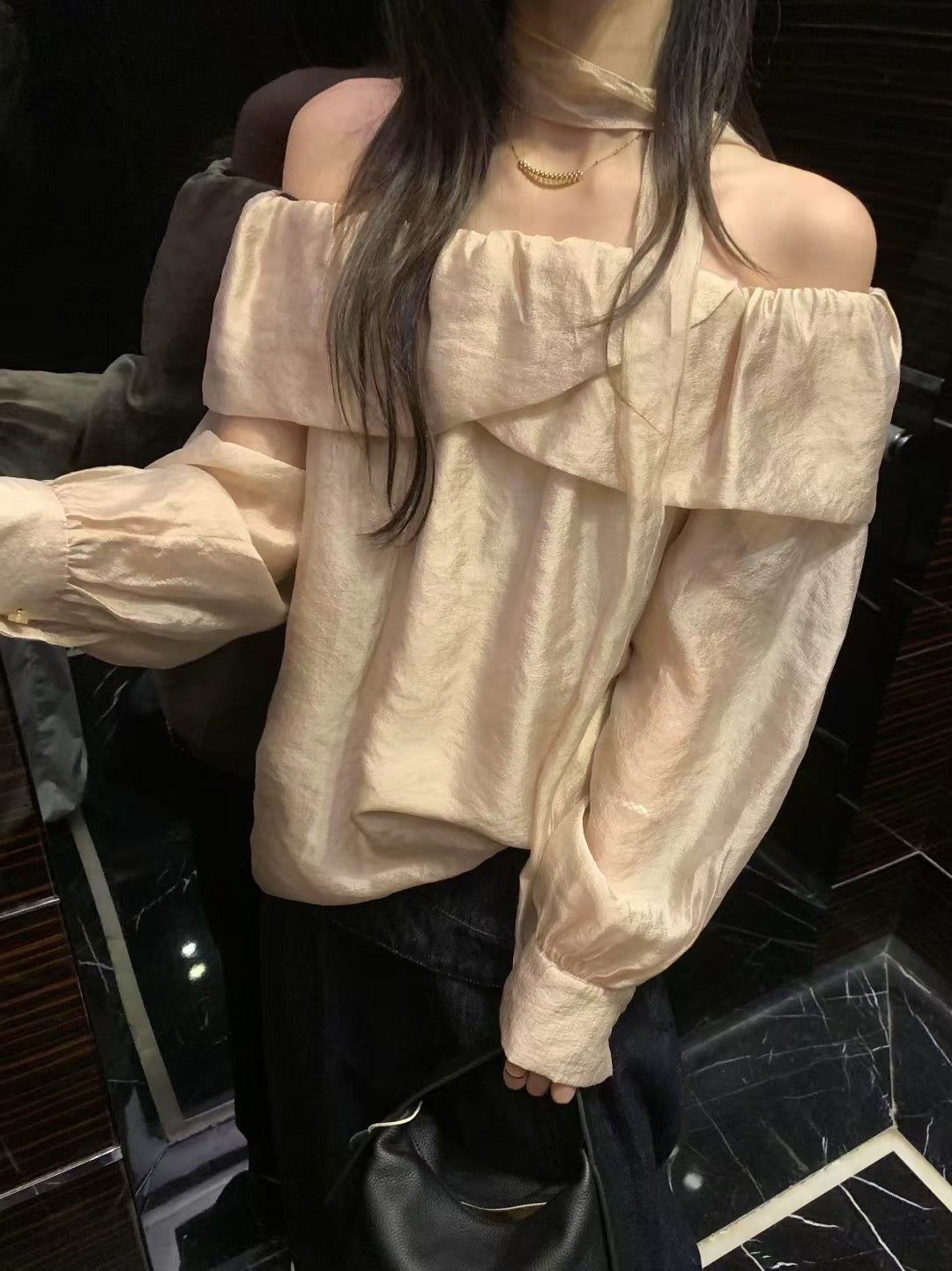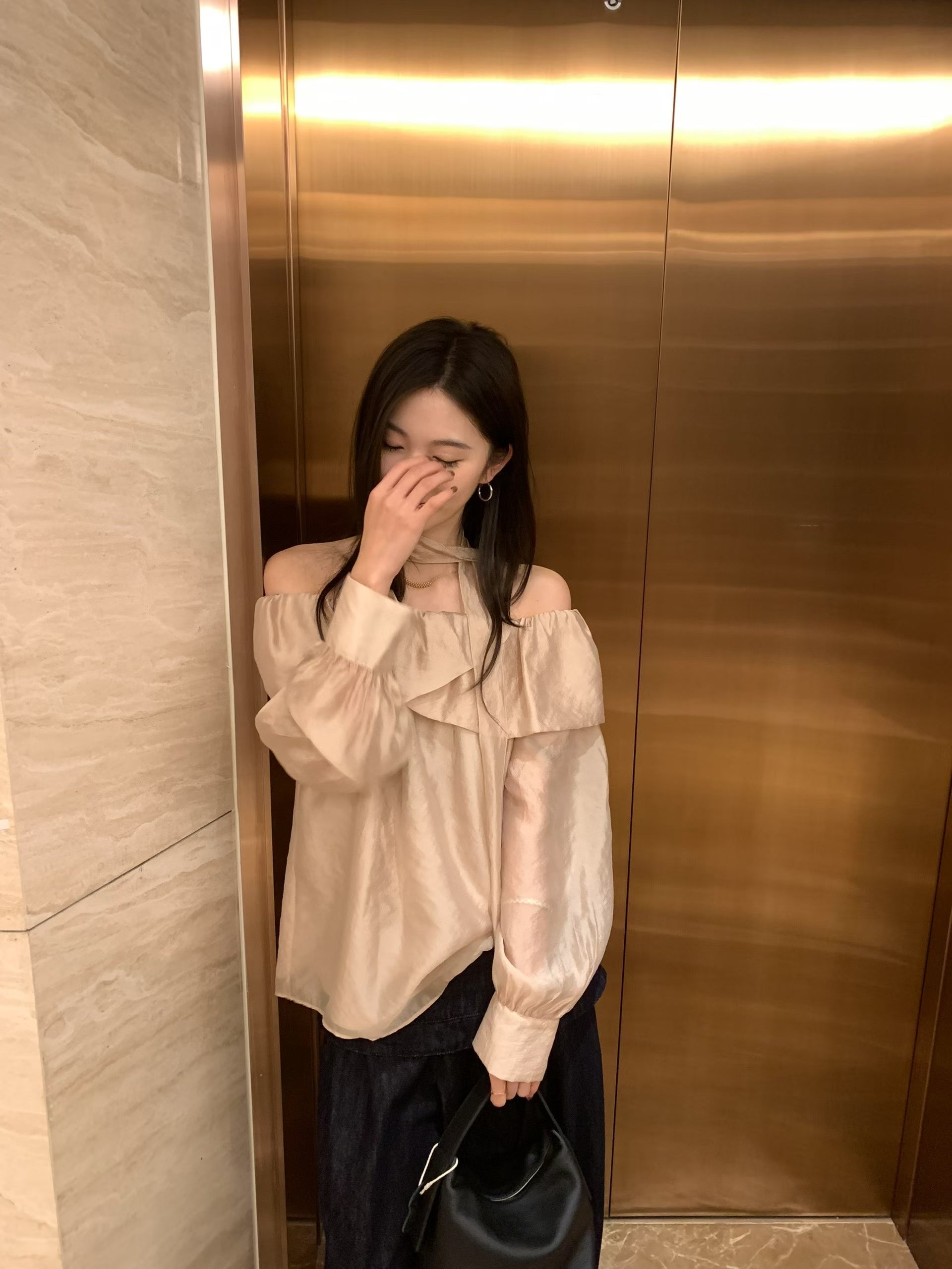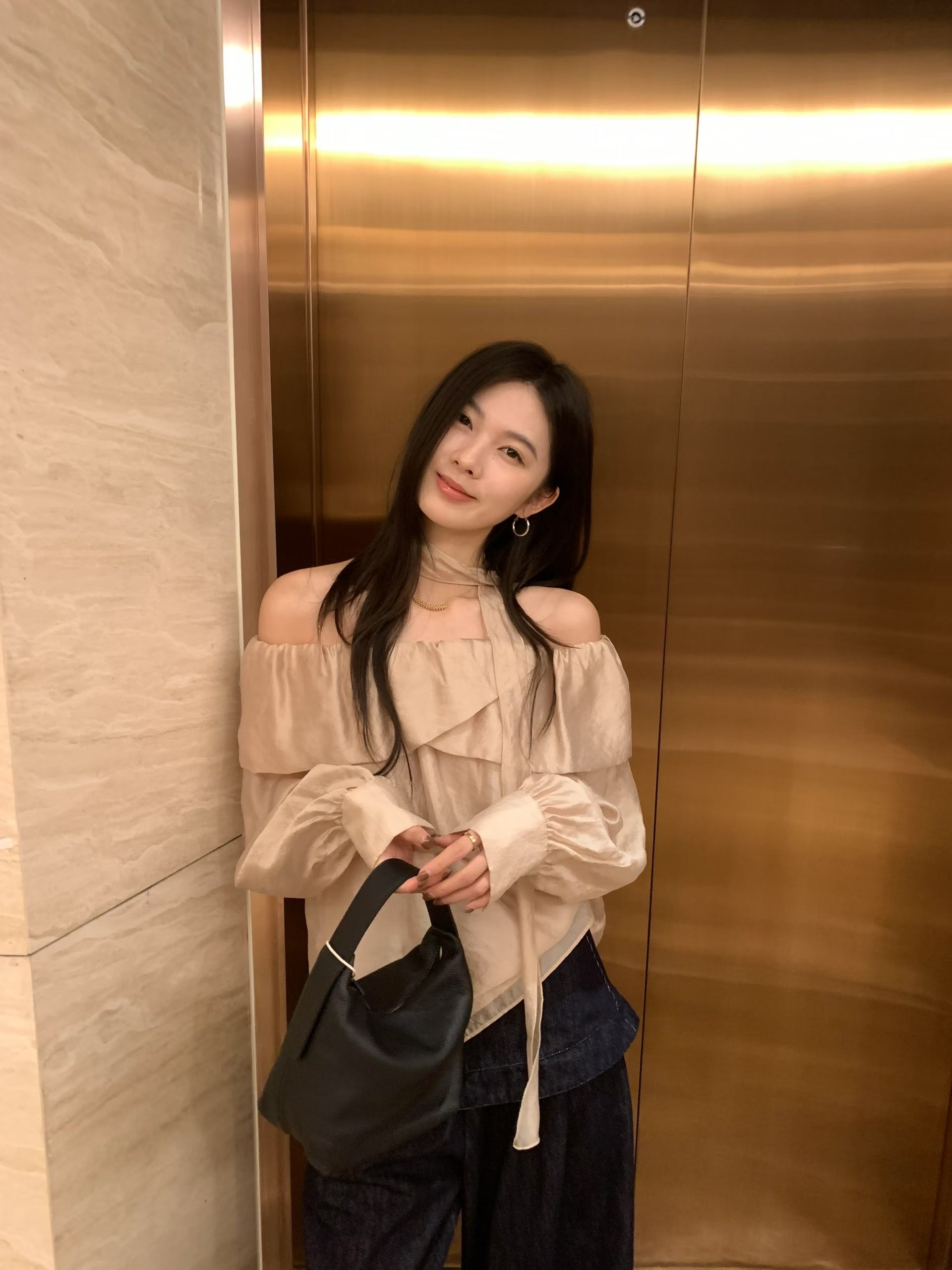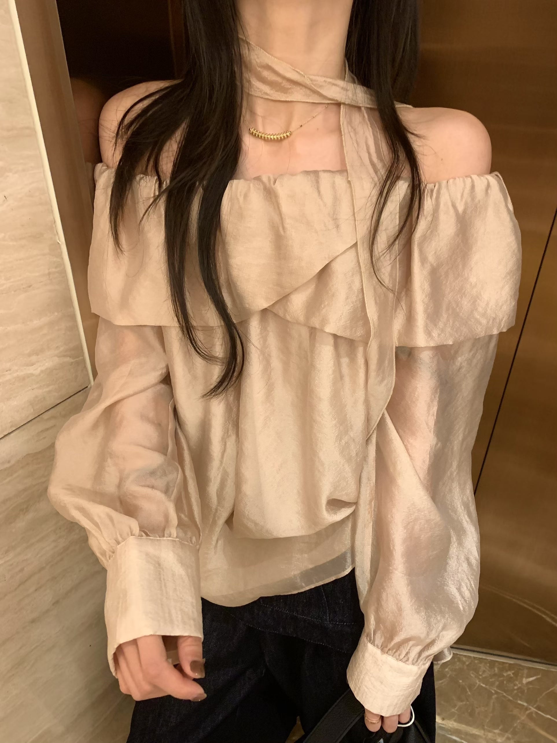 Glossy Ruffled Collar Top