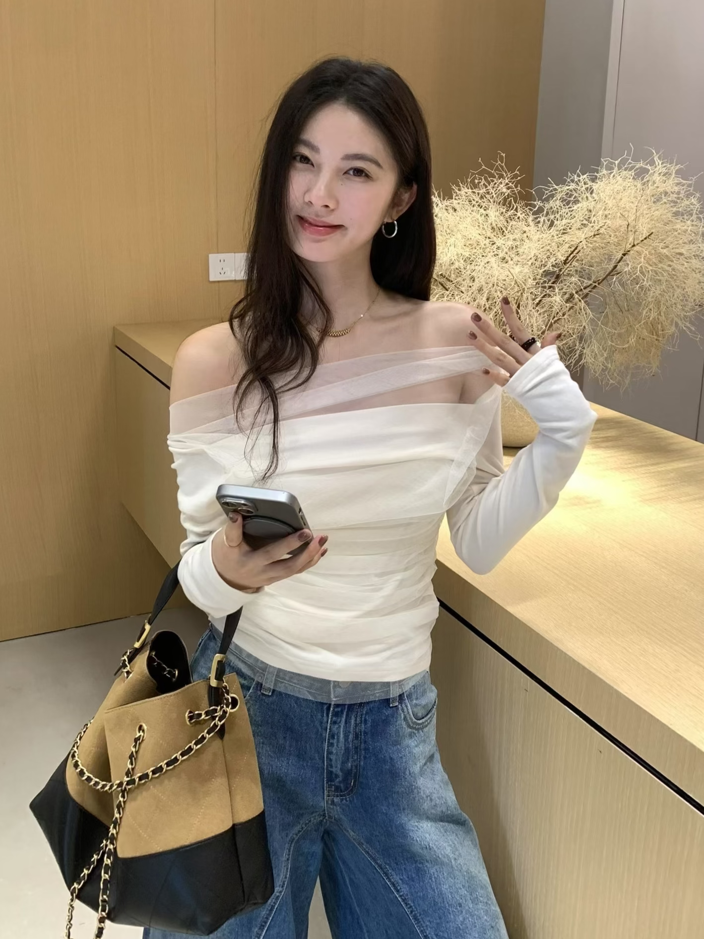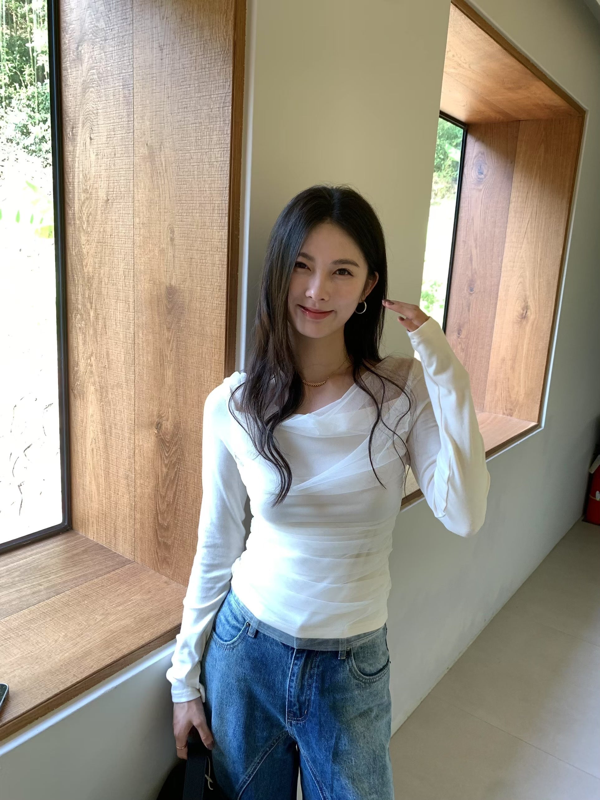 Mesh-Panel Knit Top